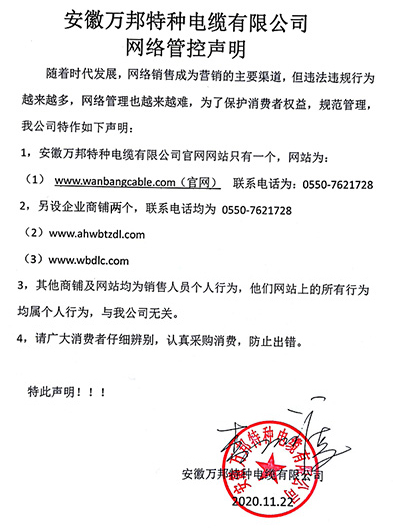 鄭重聲明:安徽萬邦特種電纜有限公司官方網站為:www_wanbangcable_com.yuuhhh.cn,除此之外無任何子網站或合作網站,其余均為假冒偽劣。電話:0550-7621728 13485756353 地 址:安徽省天長市滁州高新技術產業開發區經四路29號
